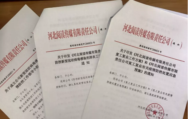 为保障复工复业平稳、安全、有序,阅读传媒公司科学组织,周密部署,已于2月10日正式复工。