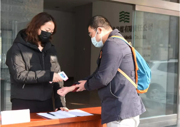 复工后,公司每天派专人对进入办公楼的所有人员,进行体温检测并登记,体温超过37.3℃者不能入楼工作,并要求其回家观察休息,必要时到医院就诊。