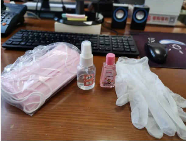 公司为所有返岗员工配发了一次性口罩、橡胶手套、乙醇消毒液、免洗洗手液等防护物资。