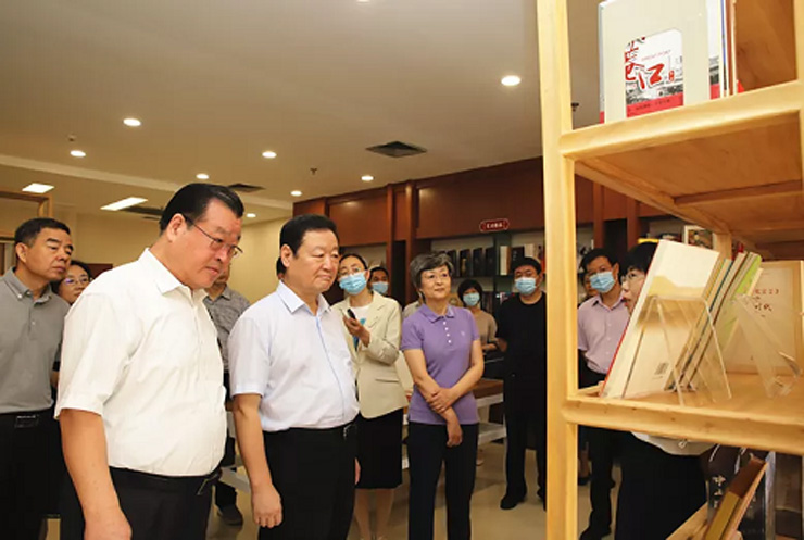 考察组一行重点参观考察了集团公司精品图书室,深入了解了近年来集团公司在党史国史、红色经典、理论读物、高端学术、儿童文学和融合出版等领域取得的成果。他们详细询问了《知之深 爱之切》《〈共产党宣言〉与新时代》《特种兵学校》等精品图书的出版情况。在融合出版展区,看到疫情期间紧急出版的疫情防控系列数字出版物时,他们对集团公司在做好疫情防控前提下,承担国有企业责任使命,积极发挥行业优势,服务全国全省疫情防控大局的做法给予了充分肯定。