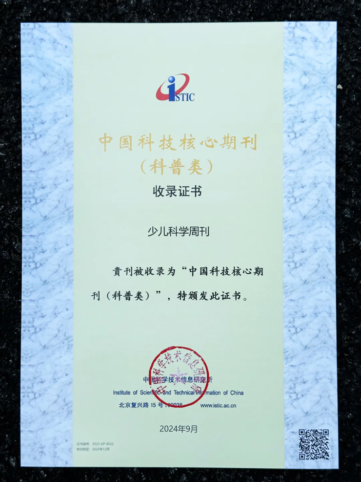 《少儿科学周刊》创刊于2011年,读者对象为6—14岁的少年儿童,是一份特色鲜明的少儿科普杂志,以朋友的视角,用主题式阅读、学科综合、动手实践相结合的方式,与少年儿童一起探索天文地理、自然生物、航空航天、物质世界、工程技术等蕴含的科学秘密,在培养少年儿童形成良好的科学思维、提升科学素养方面正在发挥着越来越重要的作用。