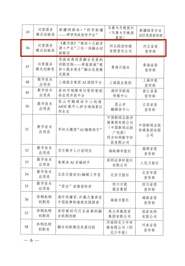 日前,国家新闻出版署公布第五届中国报业创新发展案例名单,河北阅读传媒有限责任公司申报的《〈藏书报〉“媒体+文献资源+产业”三位一体融合创新路径》成功入选运营服务模式创新类案例,是河北省2个入选项目之一。