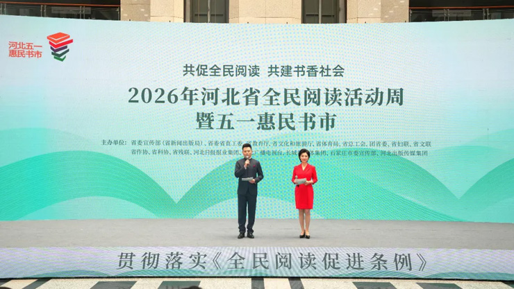 开幕式上,省委宣传部、中国作家协会、中国新闻出版传媒集团、中国出版集团等单位嘉宾登台,共同启动2026年河北省全民阅读活动周暨五一惠民书市。本届书市将从4月26日持续至5月2日,采取线上线下相结合的方式在全省各地同步举办。线下主会场设在石家庄人民会堂,全国200多家出版单位携2万余种、超20万册图书重磅亮相,更有众多文化名家亲临现场,与读者共话书香雅韵。