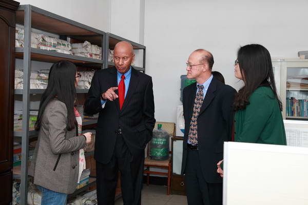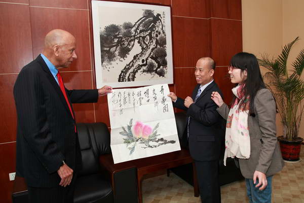 总经理潘海波首先对麦伯瑞博士的到来表示欢迎,介绍了公司的基本情况,并代表公司送给麦伯瑞博士一份非常有意义的礼物。随后,麦伯瑞博士一行先后参观了《少儿科学周刊》编辑部、设计制作部、《少年素质教育报》编辑部、《快乐作文》编辑部和《藏书报》编辑部。他们重点参观了合作伙伴《少儿科学周刊》编辑部,了解了《少儿科学周刊》今年的出版情况及其他一些情况,麦伯瑞博士还饶有兴趣地坐在其中一个座位上,做出在这里上班的样子,引得全场一片笑声。