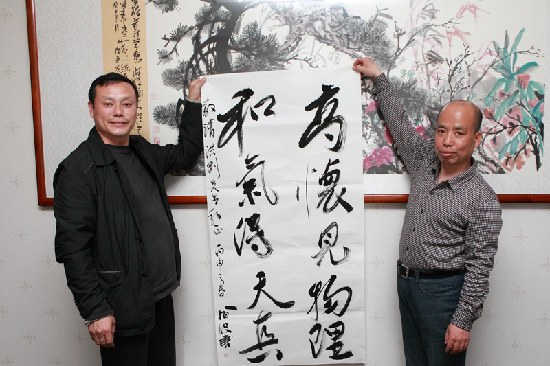 公司党委书记、执行董事、总经理潘海波向徐洪刚同志赠送书法作品